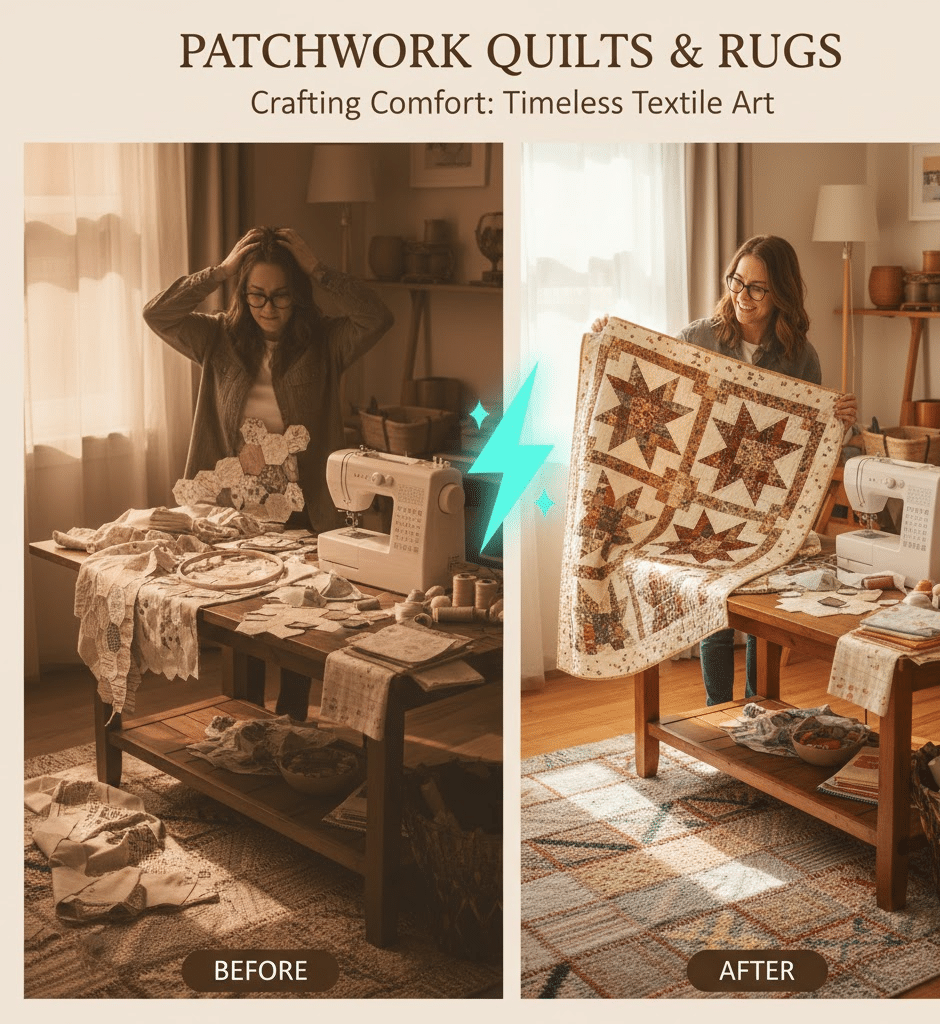 Creating patchwork quilts or rugs from fabric scraps is an ancient practice that continues to inspire makers around the world. Although many people see patchwork merely as a way to reuse leftover fabric, it is much more than that. It represents creativity, sustainability, emotional expression, and craftsmanship. In fact, making quilts or rugs from scraps gives new life to pieces of fabric that might otherwise be discarded, which contributes to a more eco-friendly lifestyle. Moreover, this art form allows beginners and experienced crafters alike to experiment with patterns, colors, textures, and stitching techniques.